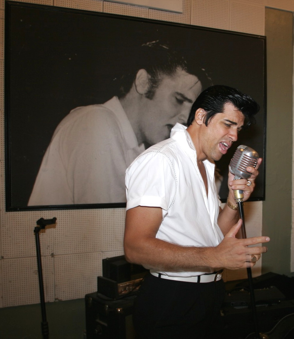 How many guys do you work with? A trio, just like the original Elvis trio: a drummer, guitarist, and bassist. We also do some Frank Sinatra and Dean Martin shows.