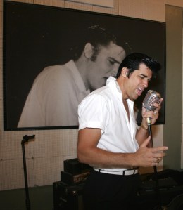 You call yourself “young Elvis.” What are the restrictions? I’m strictly a 50s Elvis – not that fat guy in a white jumpsuit. I perform mostly blues – you know, “Heartbreak Hotel” and “Don’t Be Cruel.”