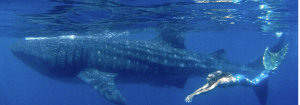 Wolbert has never visited SeaWorld, and doesn’t plan to. “I won’t put any money toward keeping animals in captivity,” she says. Above, swimming with whale sharks. Photo: Jewels Diver