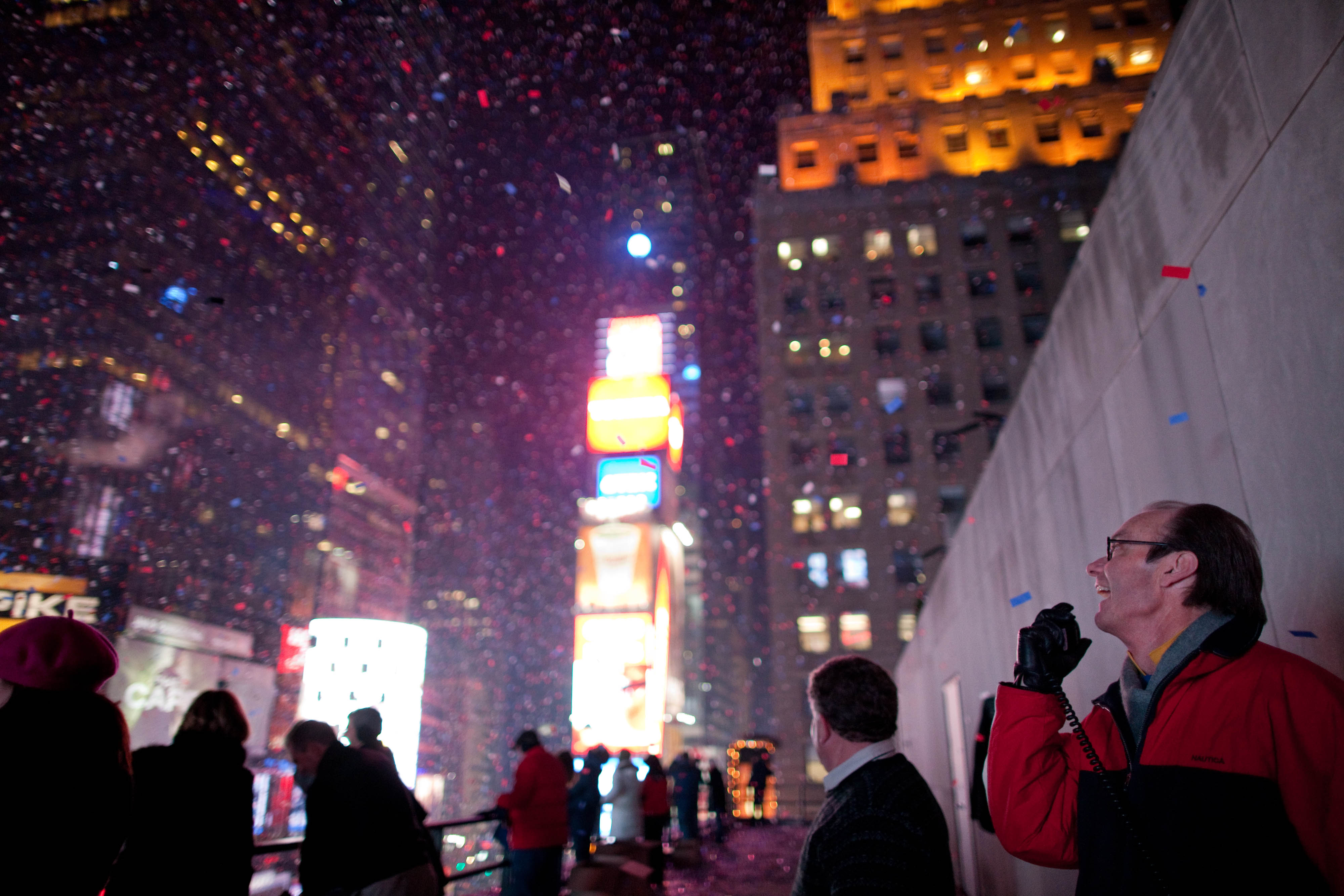 For the past 22 years, precisely 20 seconds before the clock strikes midnight on Jan. 1, Treb Heining stands perched over the railing outside the Minskoff Theater, ready for go time. He holds a radio close to his lips. “Go confetti,” he declares coolly, just loud enough for the 70 someodd people at eight different buildings towering over the center of Times Square to hear him over the din of the whooping crowds below. Then, for almost 60 seconds straight, Heining and the rest of his confetti dispersal battalion heave 3,000 pounds of confetti out of large brown boxes and into the air. It’s officially New Year’s in Times Square.