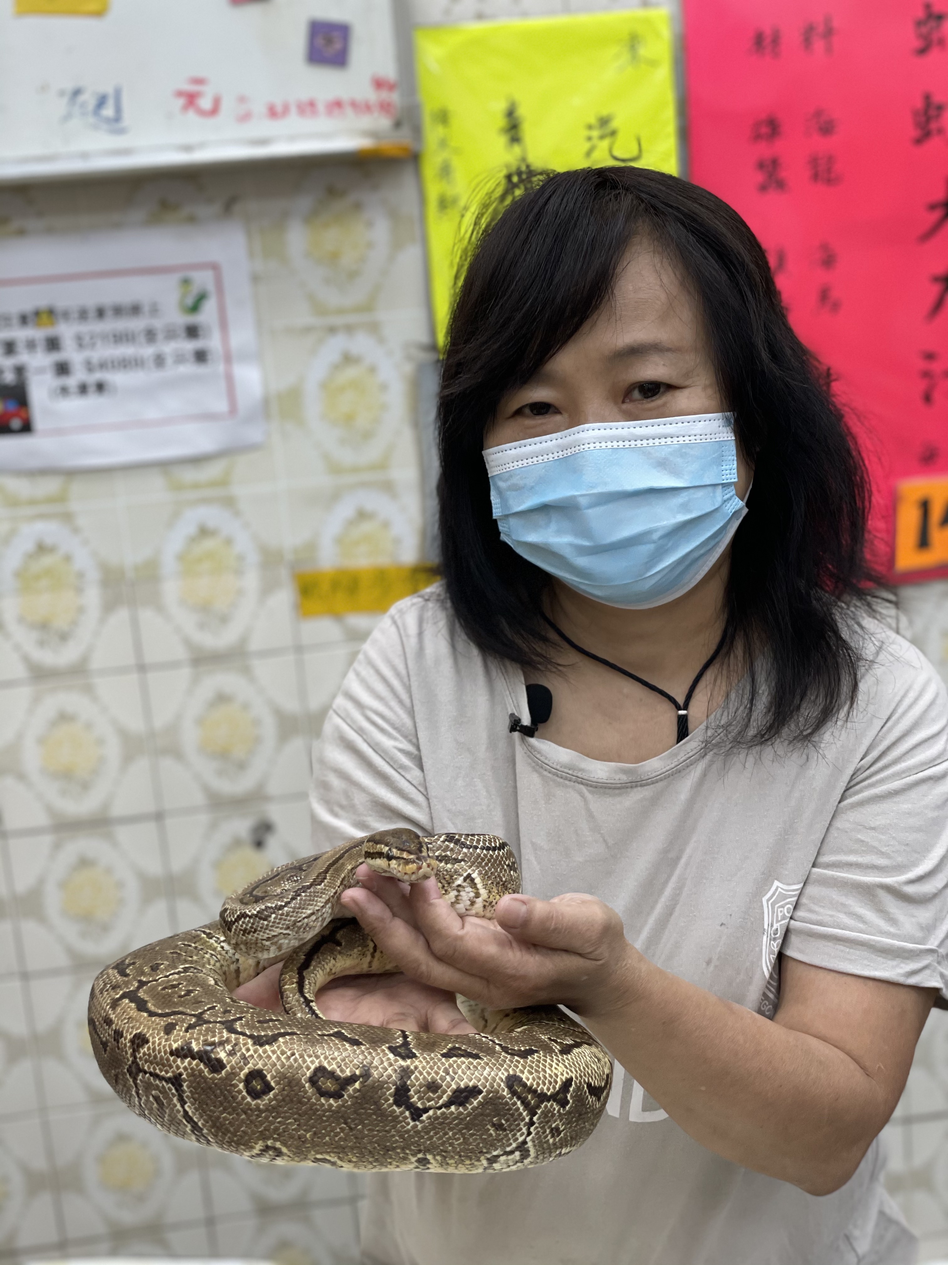 “We have rent to pay,” Chau says squarely. It’s with the same get-it-done sensibility that she opens a drawer of a tall wooden cabinet and removes a squirming non-venomous python. This one isn’t dinner, she says: Along with a king cobra, which is stored in a separate cabinet drawer labeled “poisonous” in Chinese, she keeps this python as a pet.