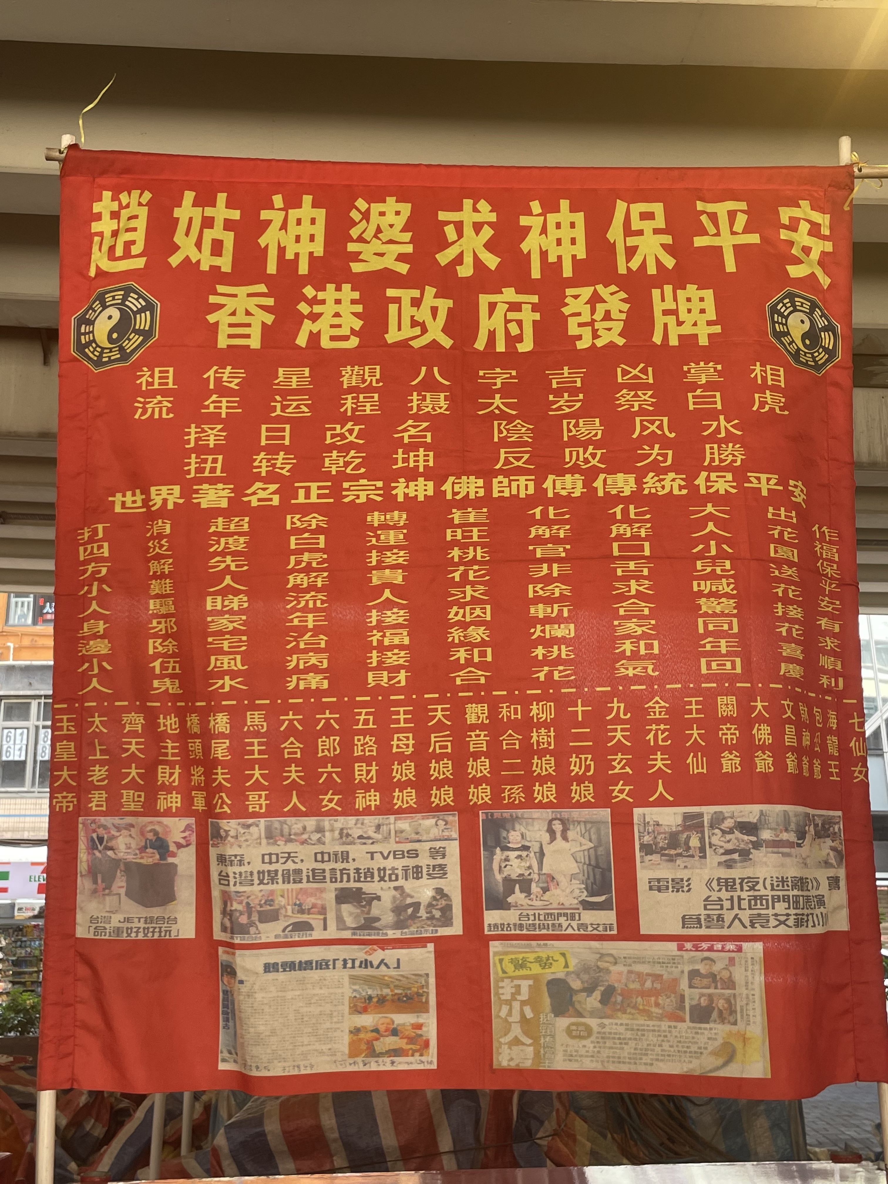 She reveals a piece of paper explaining her services, which local journalists helped her translate into English for tourists: To expel the devil and to make you calm, and comfort mentally and physically. Charge $50/time. That’s $50 HKD – a little over $6 USD. The price of a latte, give or take. Curses take effect in about a week’s time and can potentially linger for years.