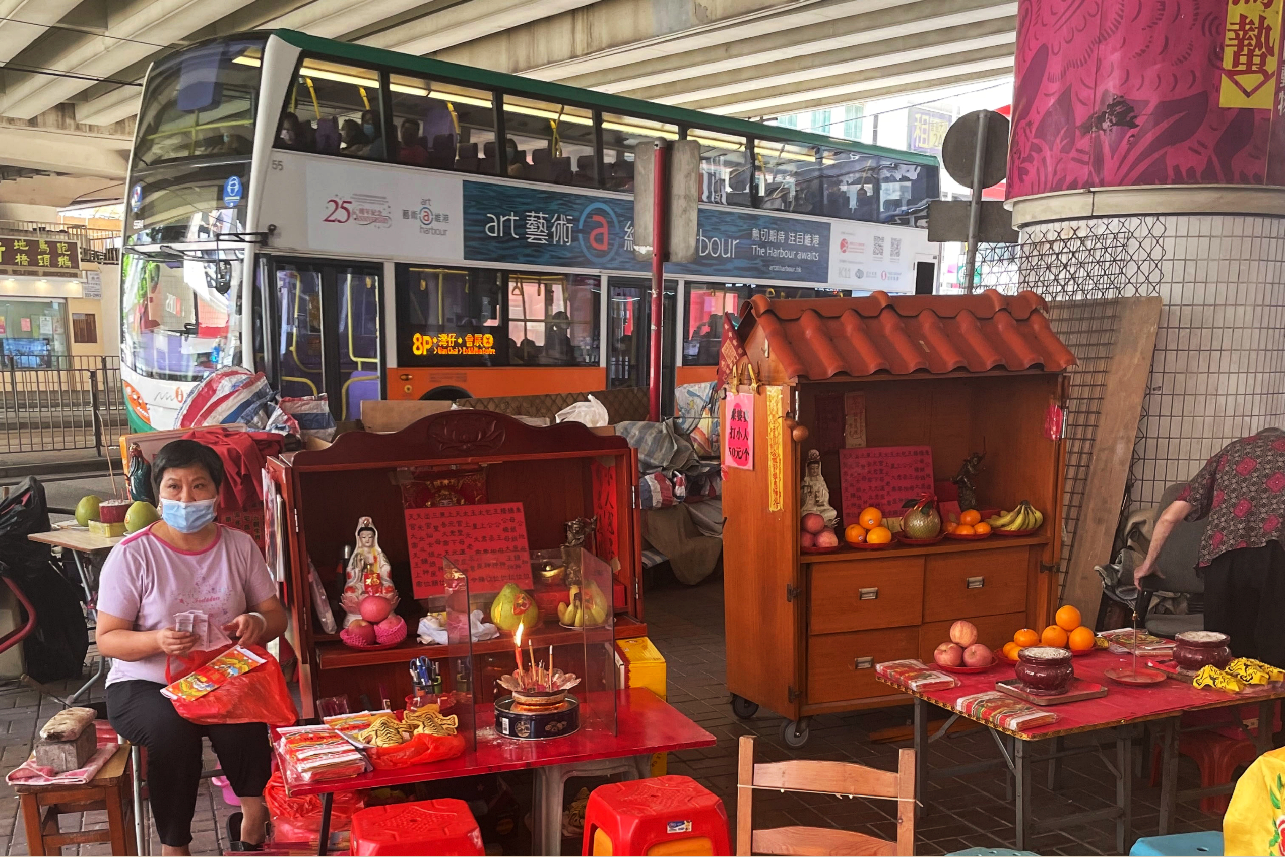 The practice of da siu yan has centuries-old origins in southern China, where Chiu, now in her 70s, grew up. Over 30 years ago, a family friend who worked as a medium in her hometown of Dongguan, in Guangdong Province, asked if she wanted to learn to help others. Chiu agreed. She was working on her family’s farm, but when it rained, she needed something to do indoors. Chiu moved to Hong Kong around 1999 when the Communist Party began cracking down on the custom in mainland China, settling in the same Causeway Bay overpass she occupies today, known as the Canal Road Flyover. She’s often there seven days a week, from 11 a.m. until as late as 8 p.m.